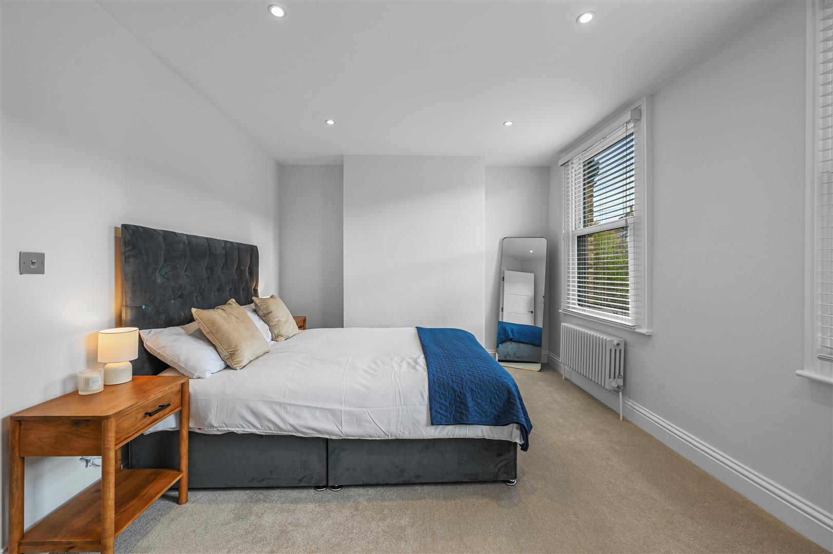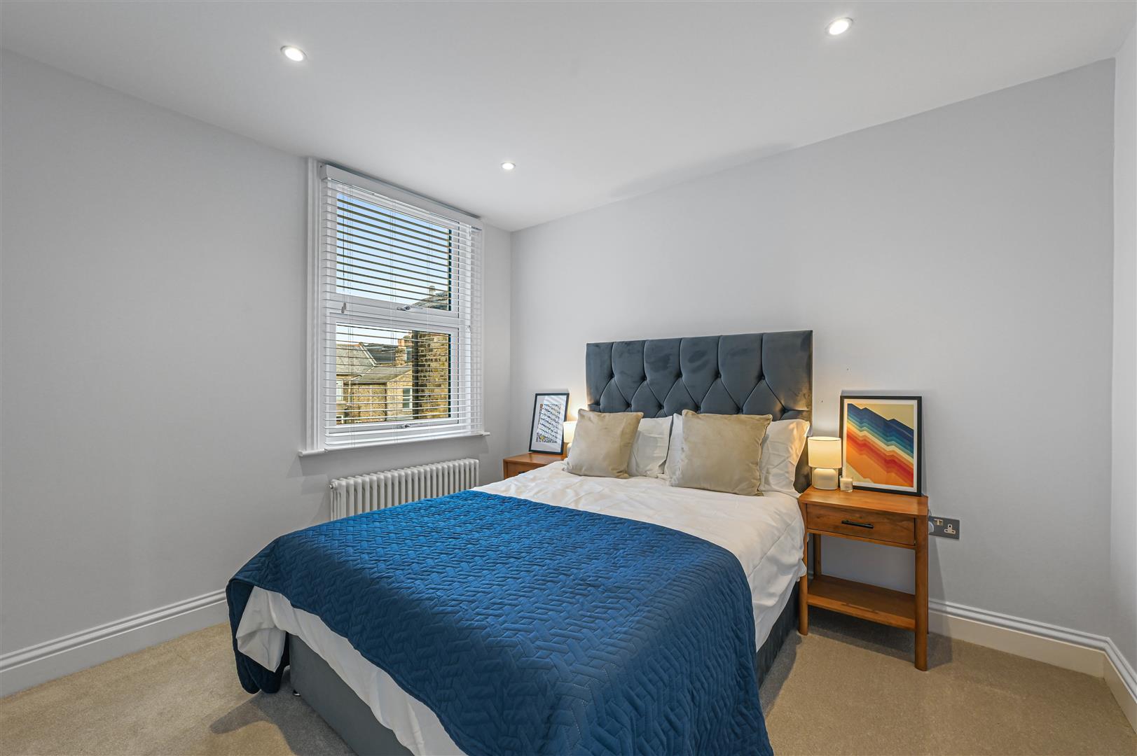 Ascending to the first floor, the landing provides access to two well-proportioned double bedrooms at the front, both offering ample space for wardrobes and additional furniture. Newly fitted carpets and sash windows allow plenty of natural light to flow throughout. The family bathroom has been finished to a high standard, incorporating Victorian-style tiled flooring, sleek white tiled walls, a walk-in shower with a waterfall feature, a freestanding bath, low-level WC, and useful storage, complemented by an opaque rear-facing window. The staircase continues to the second floor, where there are two further double bedrooms, one of which benefits from eaves storage, skylights, and access to a stylish en-suite shower room. Further benefits include the property being offered for sale with no onward chain.