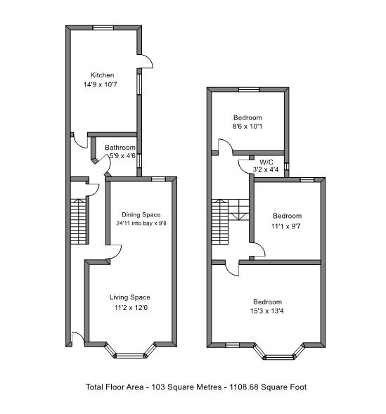 Situated in Manor Park, this spacious three-bedroom family home offers generous living accommodation throughout.Upon entering, you are welcomed by a hallway providing access to all ground-floor rooms, with storage under the stairs and stairs leading to the first floor. The through lounge is exceptionally spacious and features a large bay window to the front, flooding the room with natural light. The décor neutral, and the layout offers ample space for both living and dining areas. Further along the hallway is the bathroom, fitted with a panelled bath, washbasin and low-level W/C. To the rear of the property, the kitchen incorporates white cabinetry at both eye and base level, along with a washing machine and fridge freezer. A door leads to the side return, which provides additional space for a dining table and chairs. The rear garden is a blank canvas, measuring approximately 32’0 in length with an additional 20’0 side space. Ascending the stairs to the first floor, you will find access to all bedrooms each a generous size with ample space for wardrobes and furnishings. All rooms benefit from natural light, grey fitted carpets, and neutral white-washed décor. There is also access to a well-appointed W/C on this level. The property offers scope for a loft extension to create an additional bedroom and bathroom, subject to planning permission.